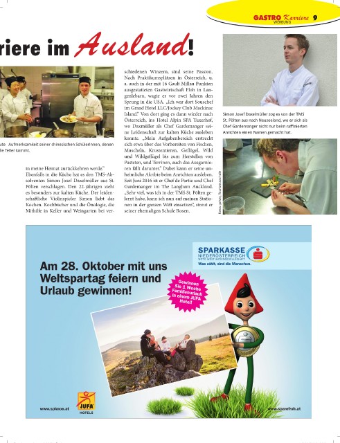 es besonders zur kalten Küche. Der leiden- „Sehr viel, was ich in der TMS St. Pölten ge- Fotos: privat, Tourismusschule