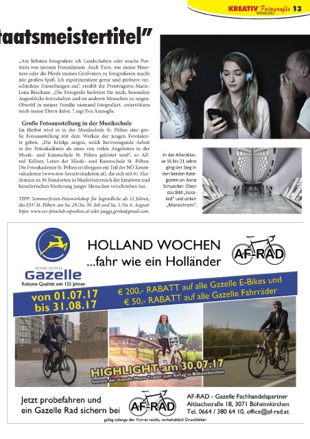Die Fotoakademie St. Pölten ist übrigens ein Teil der NÖ Kreati- ging der Sieg in