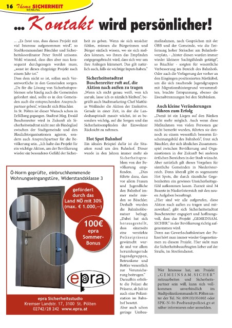 Sicherheitspro- örtlichen Bereichen in der Stadt wünscht.