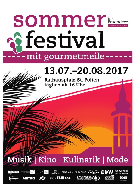 sommer festival mit gourmetmeile 13.07.–20.08.2017 Rathausplatz St. Pölten täglich ab 16 Uhr Musik | Kino | Kulinarik | Mode