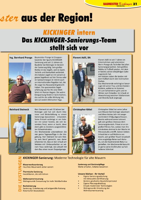 Kickinger und hat sich durch Inte- zum Maurer bei Kickinger absolviert