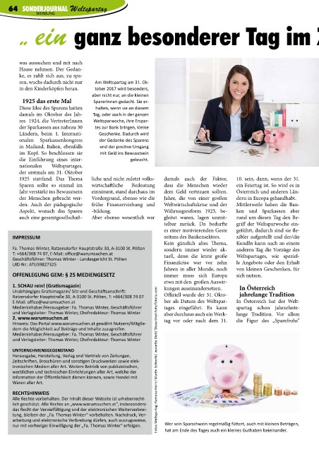 Zeitschriften, Broschüren und sonstigen Druckwerken sowie elek- Fotos Weltspartag: Ramona Heim/ Martin Schlecht/ Jeanette Dietl/ Show-Shot-Foto/fotolia.com