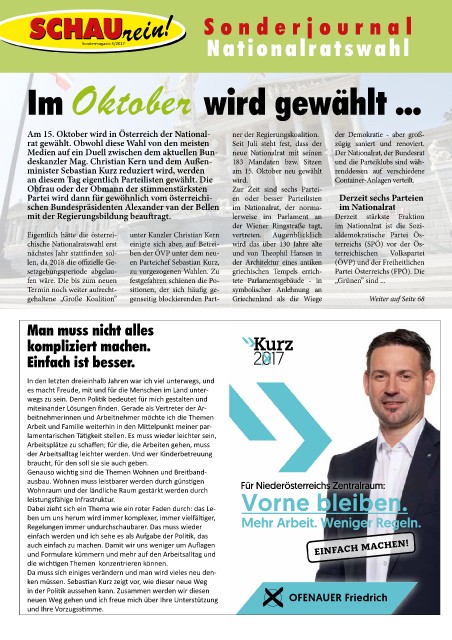 Am 15. Oktober wird in Österreich der National- ner der Regierungskoalition. der Demokratie - aber groß-