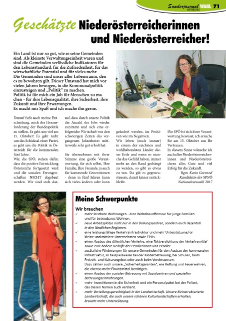 Wir, die SPÖ, stehen dafür, Stimme eine große Verant- che das Gefühl haben, immer innen und Niederösterrei-