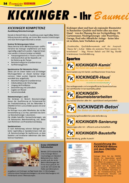 mi-Fahrer bei Kickinger verpflichtend und muss ´Bauen für’ s Leben` bilden die zentralen Werte unseres Un-