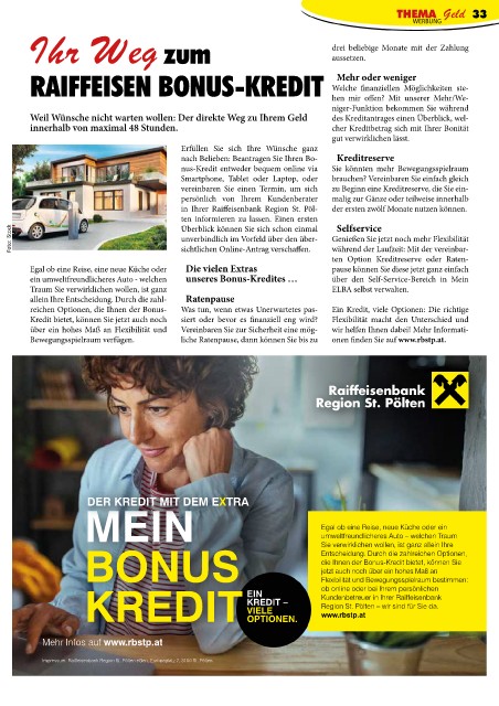RAIFFEISEN BONUS-KREDIT Welche finanziellen Möglichkeiten ste-