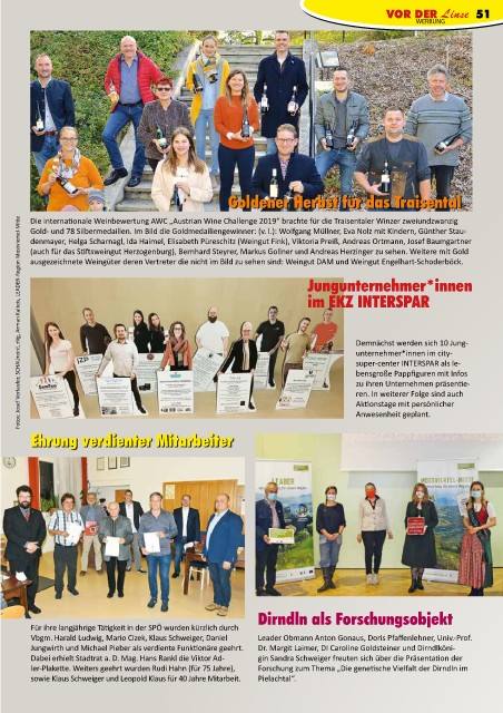 ler-Plakette. Weiters geehrt wurden Rudi Hahn (für 75 Jahre), Forschung zum Thema „Die genetische Vielfalt der Dirndln im