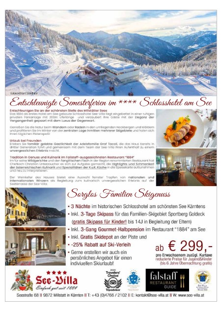 Goldeck©Gert Steinthaler Entschleunigte Semesterferien im **** Schlosshotel am See Sorglos Familien Skigenuss Winner 2019: Best European Heritage & Gastronomy