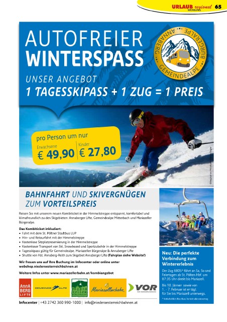 klimafreundlich zu den Skigebieten: Annaberger Lifte, Gemeindealpe Mitterbach und Mariazeller