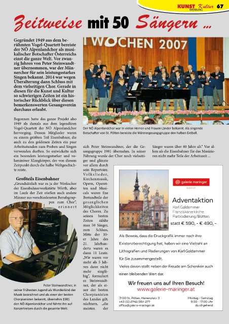 hervorging. Dessen Mitglieder waren Botschafter von St. Pölten bereiste die Männergesangsgruppe den halben Erdball.