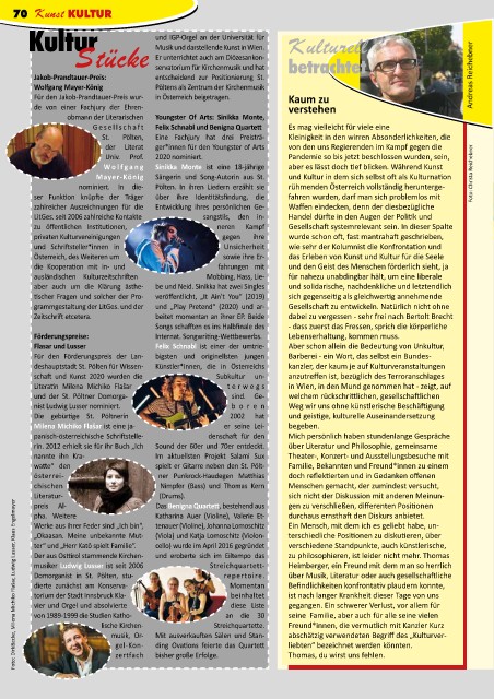Österreich, des Weiteren um sowie ihre Er- das Erleben von Kunst und Kultur für die Seele